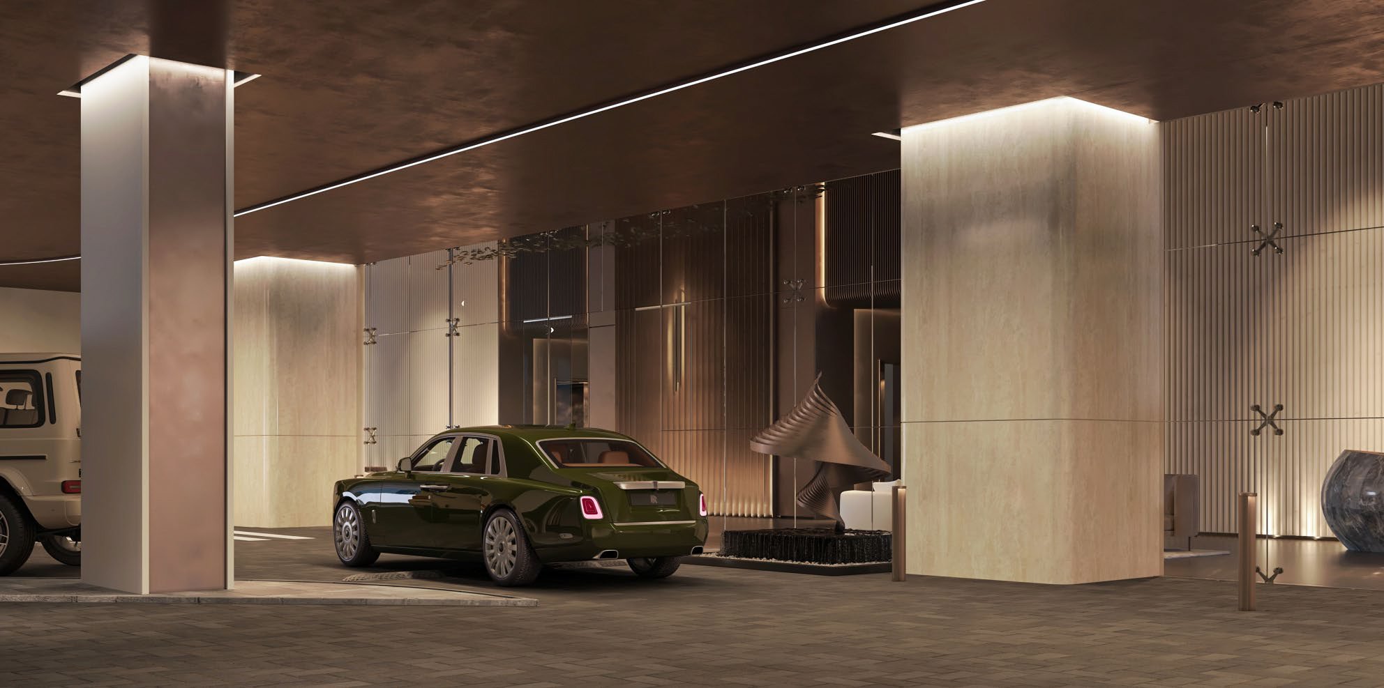 The project features 243 shell-and-core offices in two distinct collections: the Executive Collection (floors 2–13) and the Sky Collection (floors 15–26), separated by a landscaped garden level on floor 14. Offices range from 808 to 2,295 sq.ft with ceiling heights up to 5.2 metres, floor-to-ceiling glazing, and fully customisable layouts. The tower's iconic 33-metre double-height grand lobby features three independent access lanes, VIP drop-off, and 15 high-speed passenger lifts — setting the tone for a premier corporate address. An adjacent 623,000 sq.ft urban park, Canal Sky Garden, rooftop infinity pool, yoga deck, co-working areas and a full wellness suite redefine work-life balance. All units qualify for the Golden Visa (from AED 3.5M). Handover Q4 2028, flexible 50/50 payment plan.